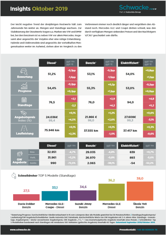 Schwacke Insights Oktober 2019 – monatliche Kennzahlen im Überblick