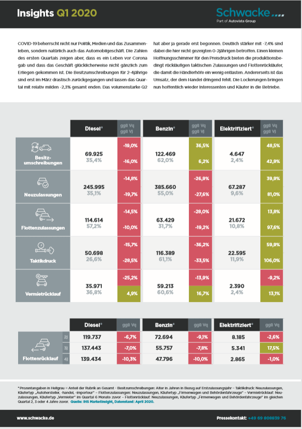 Schwacke Insights Q1 2020 – Zulassungen aus Restwertsicht